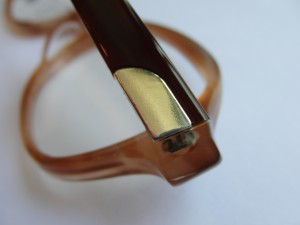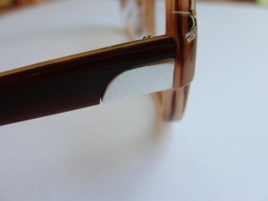 テンプル部に装飾されたシルバー素材のパーツに